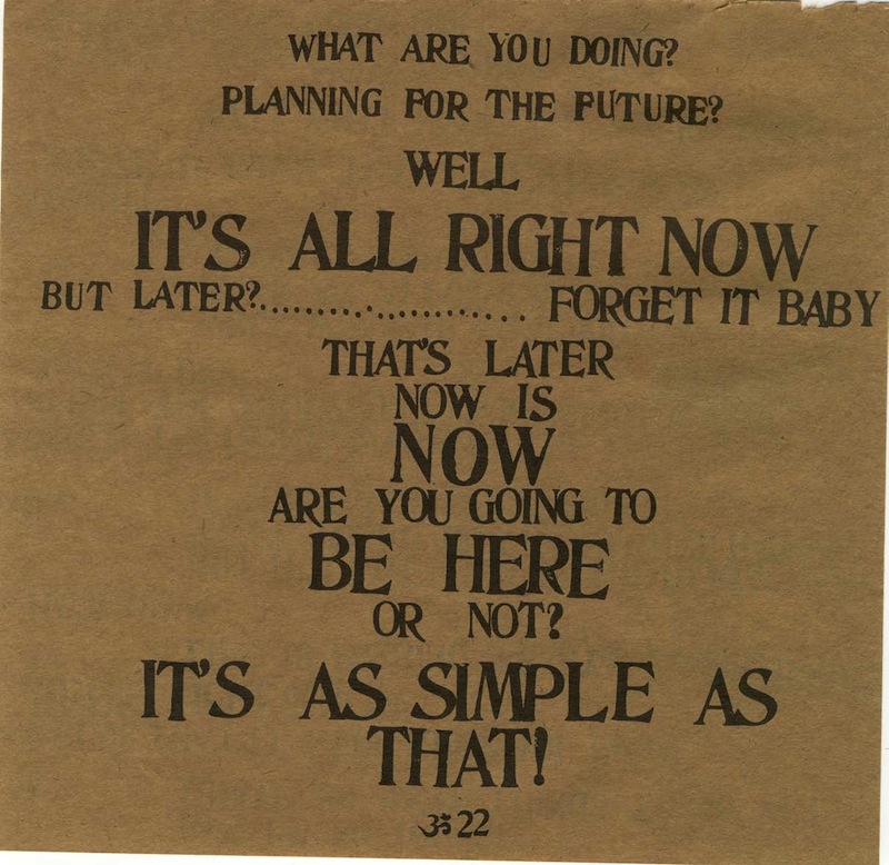Why Be Here Now? To get somewhere? No. Been beating my head both noisily and ever so subtly against that one. And I may yet again. That is yet to be seen. What is not yet to be seen is the fact that there is no joy there. It appears to work. Stay still and life improves. The ‘I’ co-opts this understanding so skillfully, so quickly. Not resisting is not being an ‘I’ with a thing. It is simply being here now. The moment resistance arises, there arises the existence of an ‘I’. What a teaching tool. One of God’s finest inventions.